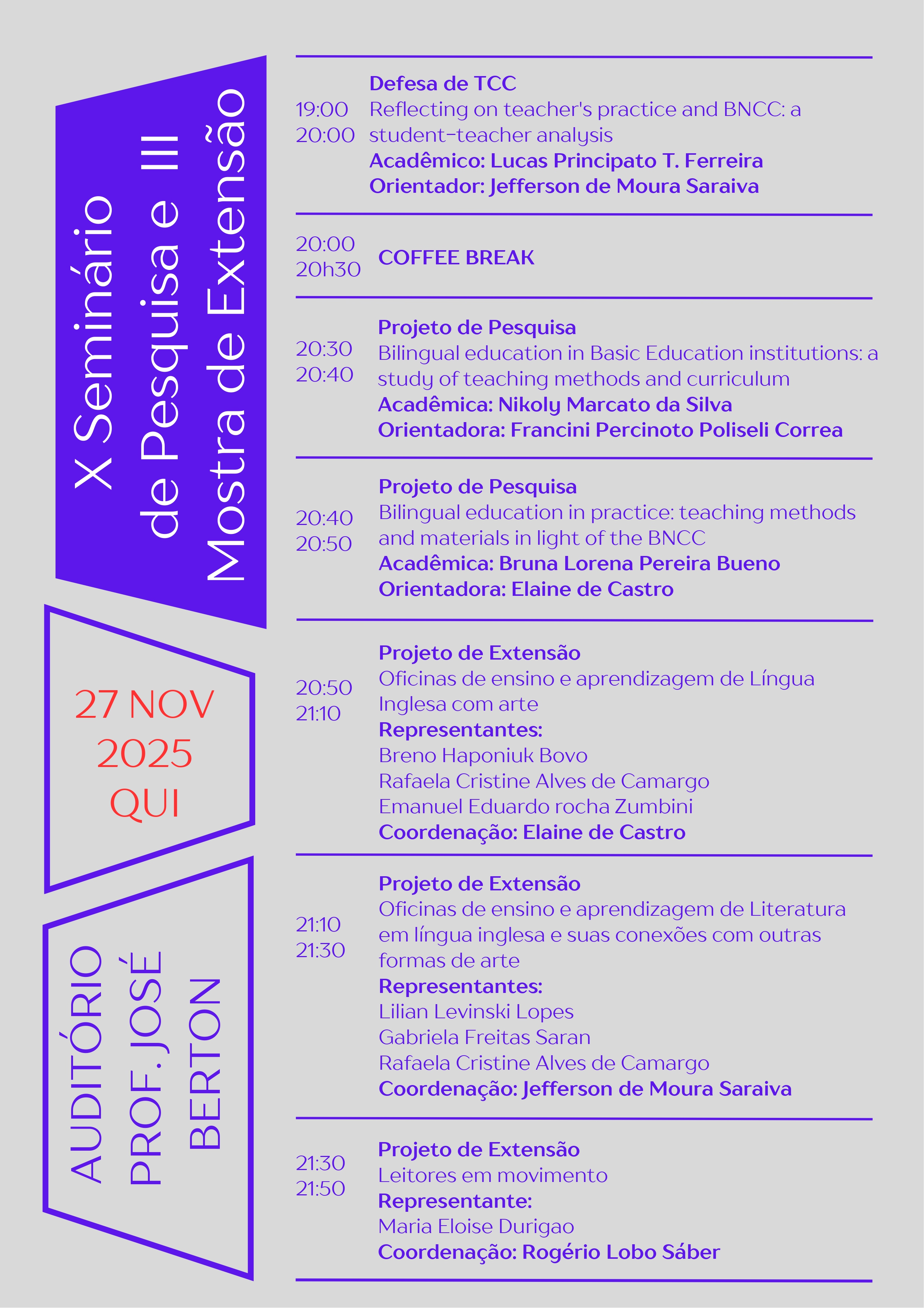 Curso de Letras-Inglês da Unespar Campus Apucarana promove X Seminário de Pesquisa e III Mostra de Extensão