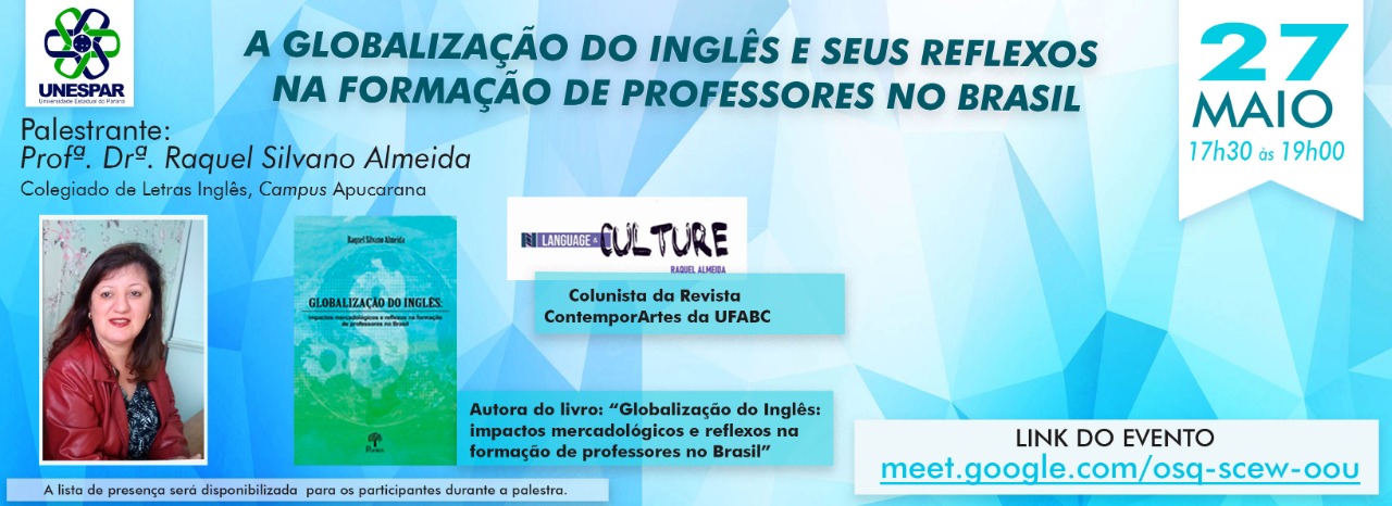 Palestra "A Globalização do Inglês e seus Reflexos na Formação de Professores no Brasil" será ministrada no próximo dia 27 de maio. Confira!