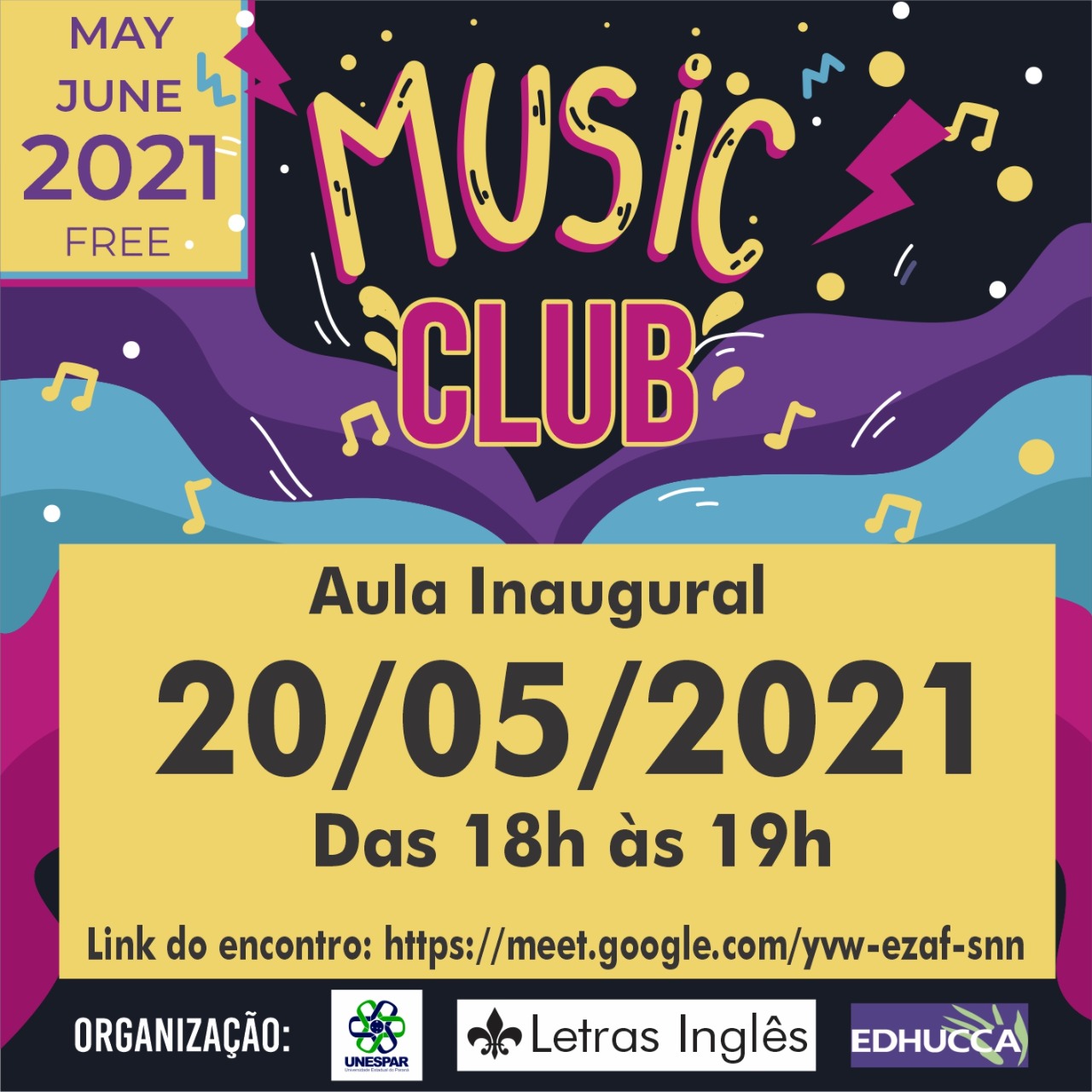Aula Inaugural do MUSIC CLUB será nesta quinta (20/05), a partir das 18h. Confira