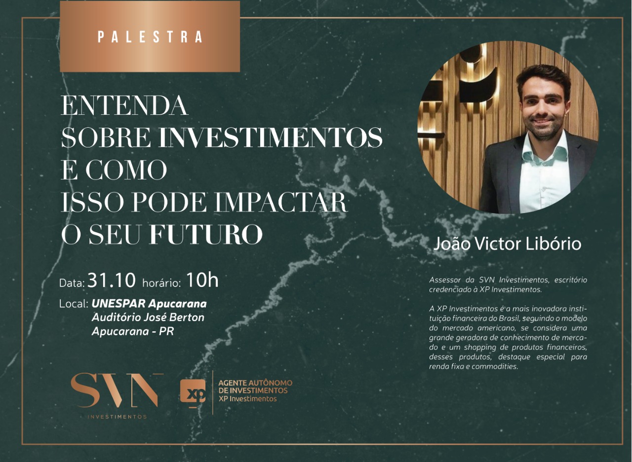 Colegiado de Administração promove palestra: "Entenda sobre investimentos e como isso pode impactar o seu futuro", com João Victor Libório. Confira!
