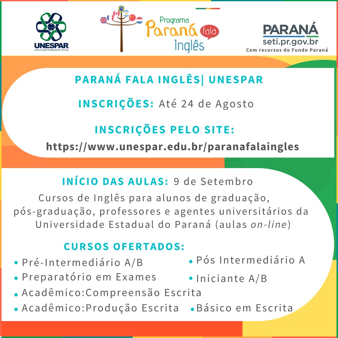 Começaram as inscrições para os cursos de inglês do Paraná fala Inglês (PFI) da Unespar