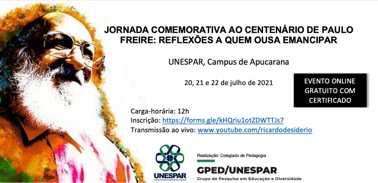 Confira o Evento "Jornada Comemorativa ao Centenário de Paulo Freire: Reflexões a Quem Ousa Emancipar" nos dias 20 a 22 de Julho. Inscreva-se!