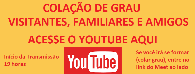 CONVITE: Colação de Grau dos Formandos 2020 será de forma remota nos dias 10 e 17 de Junho.