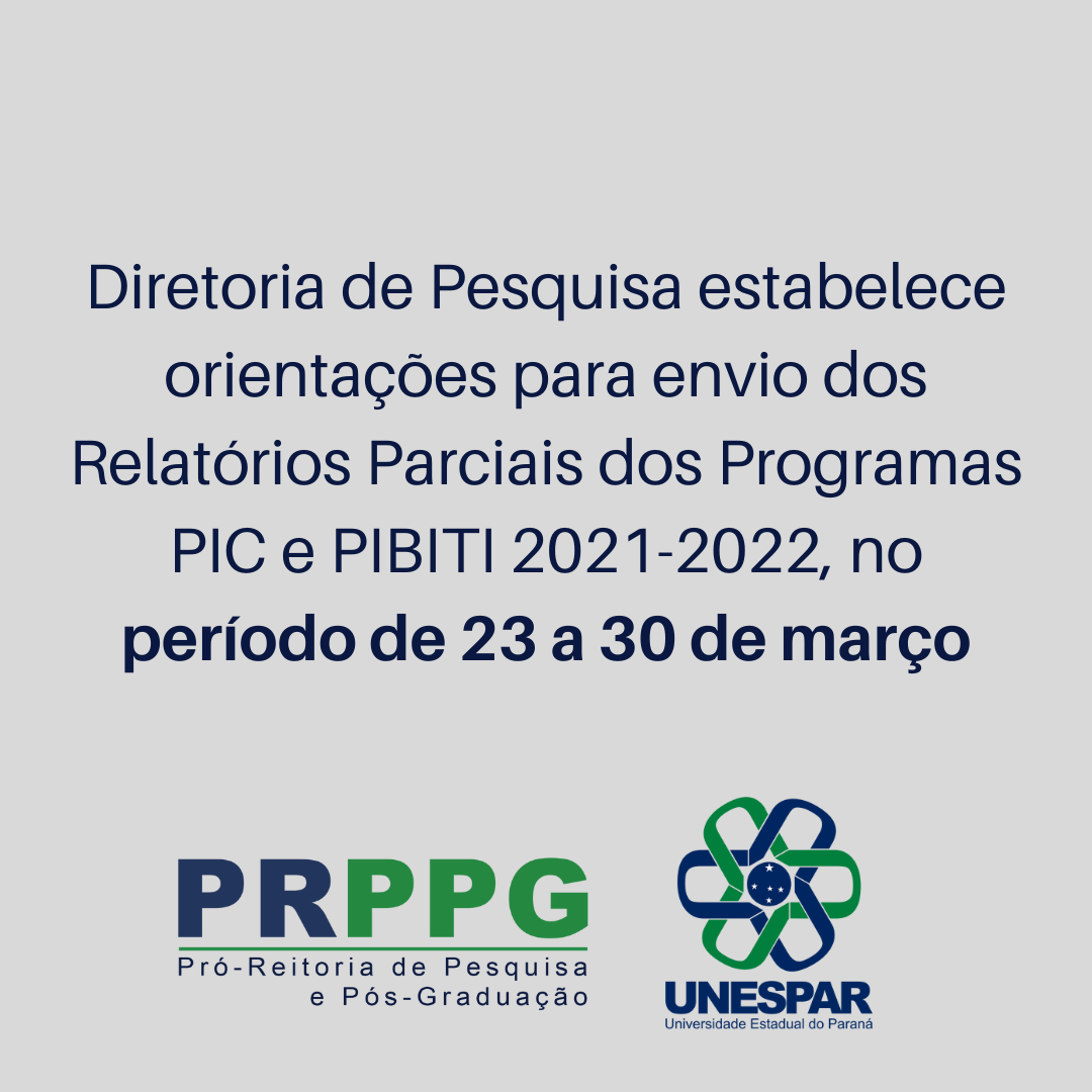 Diretoria de Pesquisa estabelece orientações para envio dos Relatórios Parciais dos Programa PIC e PIBITI 2021-2022, no período de 23 a 30 de março