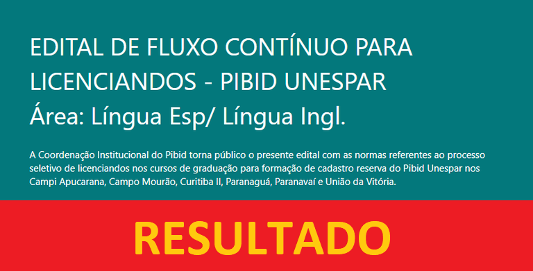 Edital com o resultado final da seleção de acadêmicas e acadêmicos para integrar o subprojeto PIBID de Inglês do campus de Apucarana