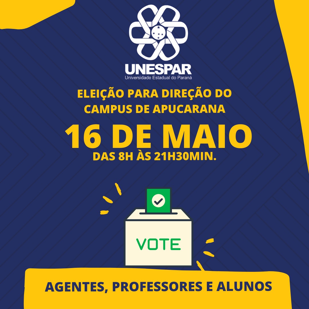 Eleição para Direção do Campus de Apucarana da Unespar ocorrerá no dia 16 de maio. Confira!