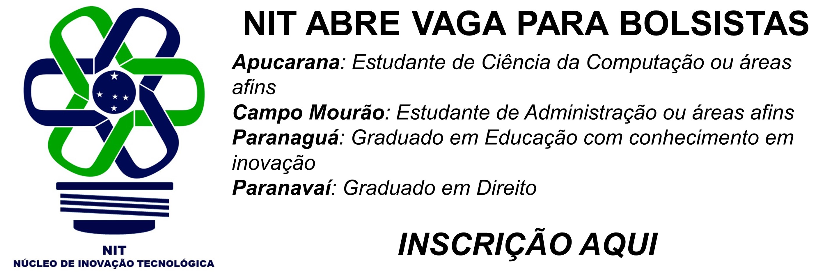 Estão abertas as inscrições para Seleção de Bolsista do Núcleo de Inovação Tecnológica no Campus de Apucarana e demais campi da UNESPAR