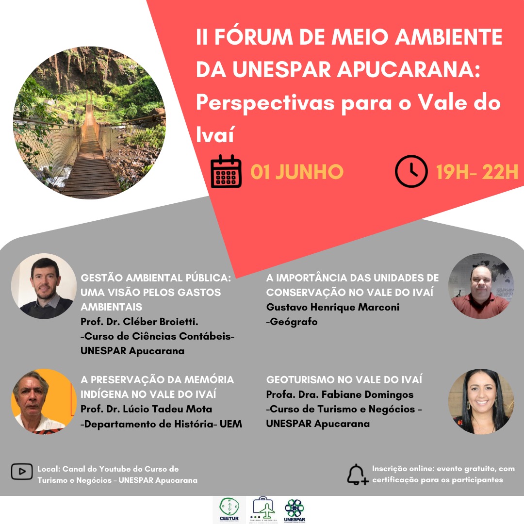 II FÓRUM DE MEIO AMBIENTE DA UNESPAR APUCARANA: "Perspectivas para o Vale do Ivaí" acontecerá na próxima terça, 01 de junho. Confira!