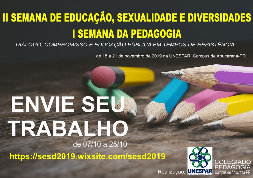 Abertas Inscrições da II Semana de Educação, Sexualidade e Diversidades - I Semana da Pedagogia
