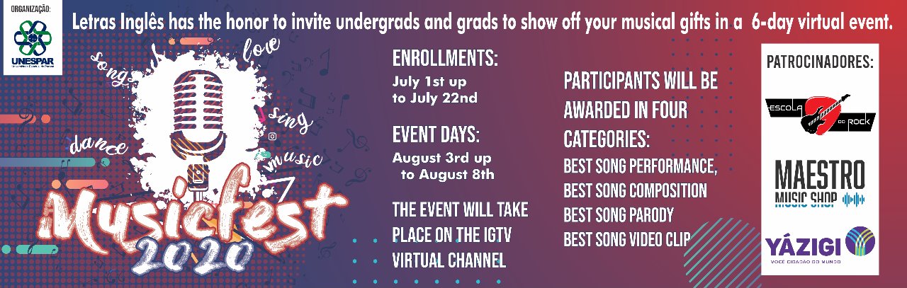 Letras Inglês promove o Musicfest 2020, festival de música online.