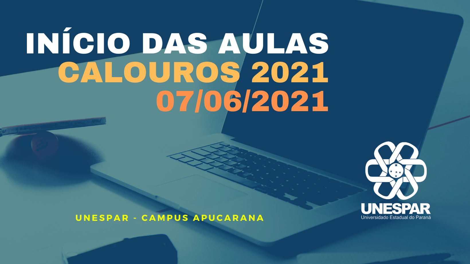 Mensagem aos CALOUROS 2021 UNESPAR APUCARANA: Início das Aulas em 07/06. Veja mais informações!
