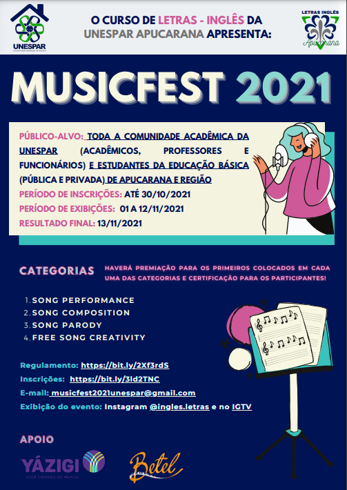 MUSICFEST 2021: PARTICIPAÇÃO ABERTA À COMUNIDADE ACADÊMICA DA UNESPAR COM CERTIFICAÇÃO