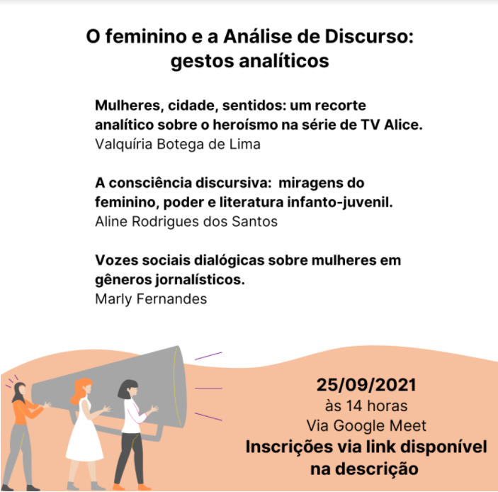 O curso de Letras Português promoverá a mesa temática com o tema "O feminino e a Análise de Discurso: gestos analíticos", no próximo dia 25/9. Inscreva-se!