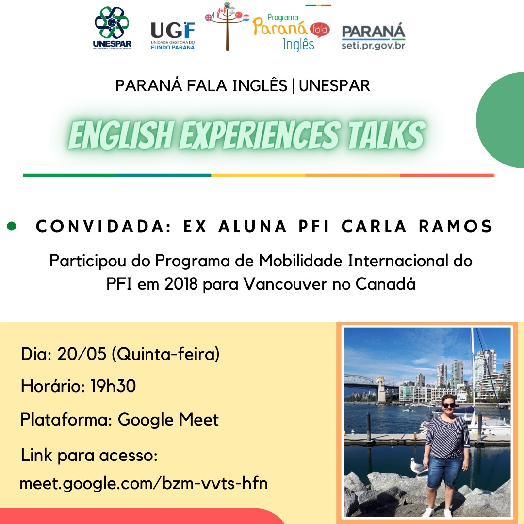 Paraná Fala Inglês fará evento hoje com egresso do curso. Confira a partir das 19:30 a conversa com Carla Ramos