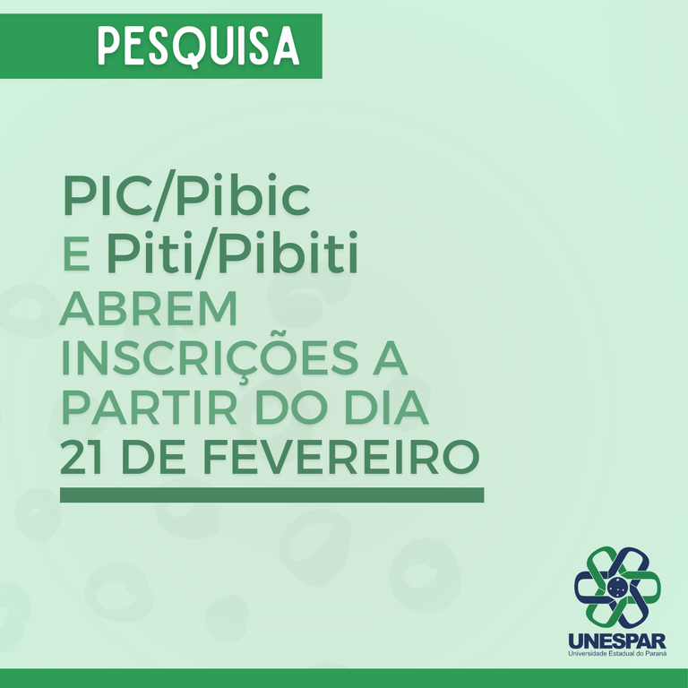 PIC/Pibic e Piti/Pibiti abrem inscrições a partir do dia 21 de fevereiro