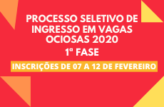 Processo Seletivo de Ingresso em Vagas Ociosas: inscrições abertas para a 1ª Fase