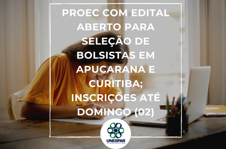 Proec com edital aberto para seleção de bolsistas em Apucarana e Curitiba; inscrições até domingo (02)