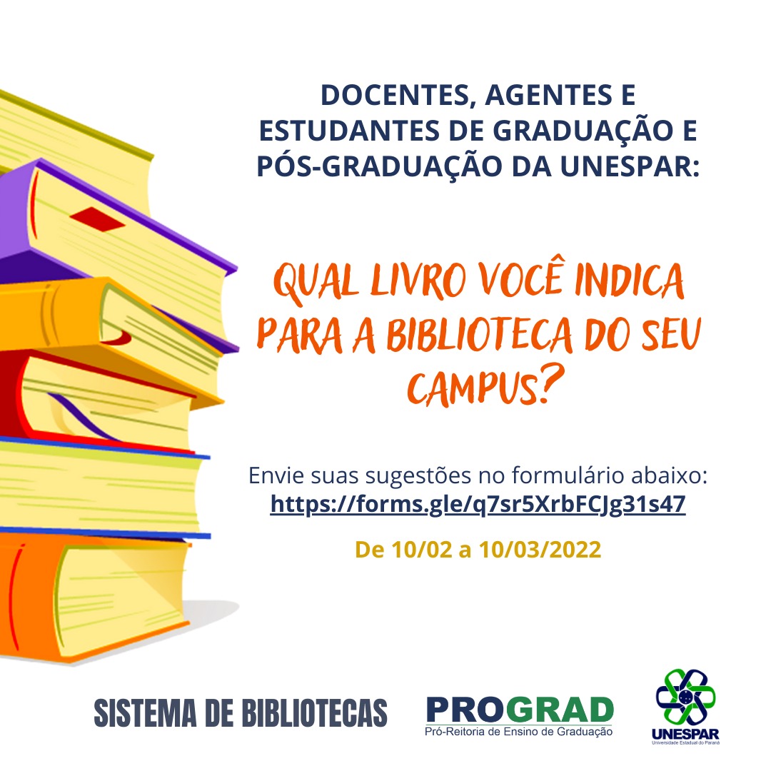 Prograd e Coordenação das Bibliotecas campanha para sugestão de livros para o acervo da Unespar