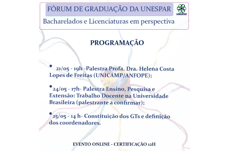 Fórum de Graduação "Bacharelados e Licenciaturas em perspectiva" acontecerá entre os dias 20 e 25 de maio