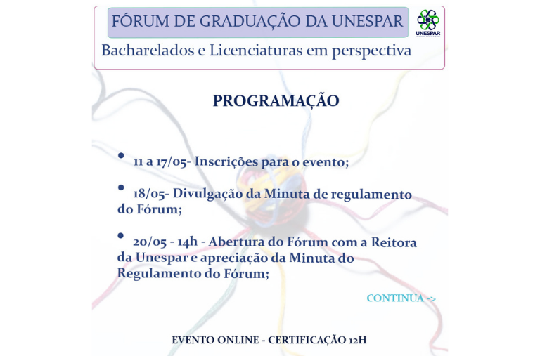 Fórum de Graduação "Bacharelados e Licenciaturas em perspectiva" acontecerá entre os dias 20 e 25 de maio