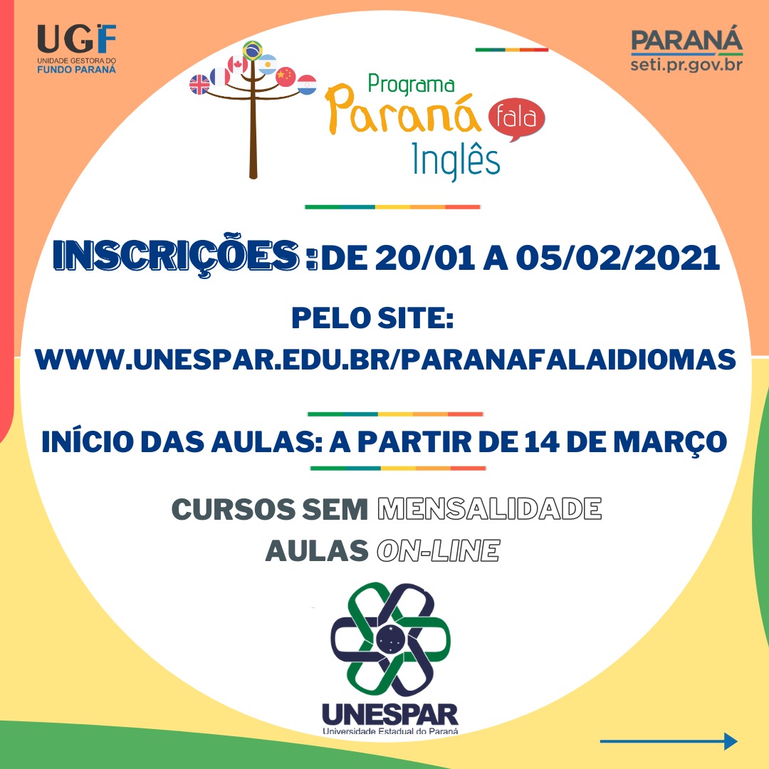Programa Paraná Fala Inglês - PFI abre inscrições: de 20/01 a 05/02/21