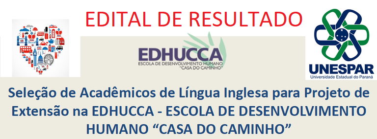 Resultado da Seleção de Acadêmicos e Egressos de Letras Inglês para o Projeto de Extensão na EDHUCCA ESCOLA DE DESENVOLVIMENTO HUMANO”