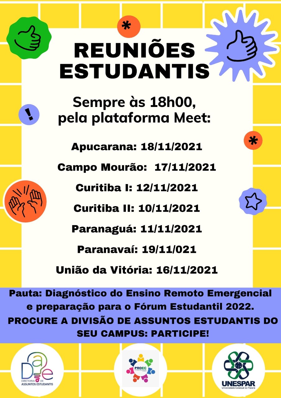 Reunião Estudantil do campus Apucarana: 18/11, 18h.