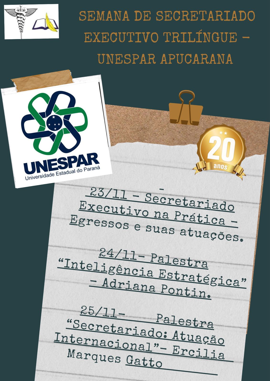 Semana de Secretariado Executivo Trilíngue - 20 Anos Construindo Excelência - Unespar Apucarana