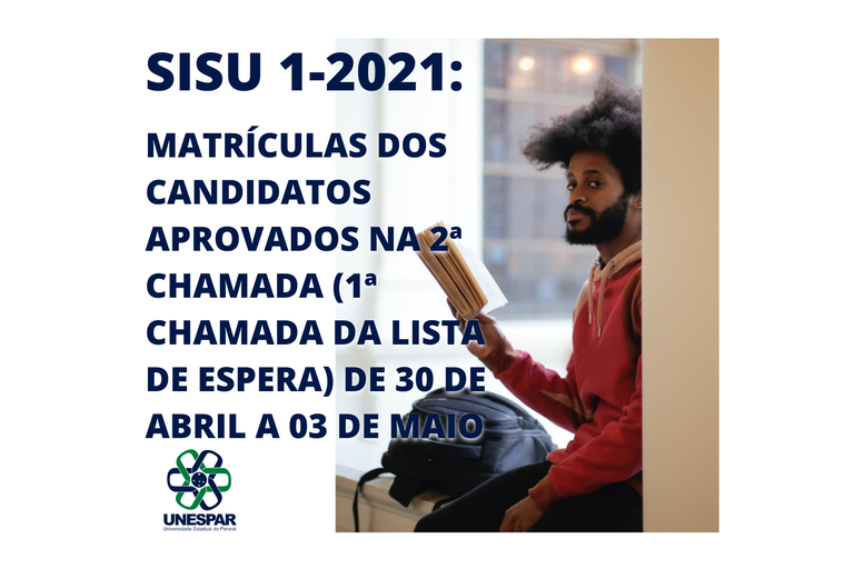 SiSU 1-2021: matrículas dos candidatos aprovados na 2ª chamada (1ª chamada da lista de espera) de 30 de abril a 03 de maio