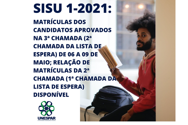 SiSU 1-2021: matrículas dos candidatos aprovados na 3ª chamada (2ª chamada da lista de espera) de 06 a 09 de maio; relação de matrículas da 2ª chamada (1ª chamada da lista de espera) disponível
