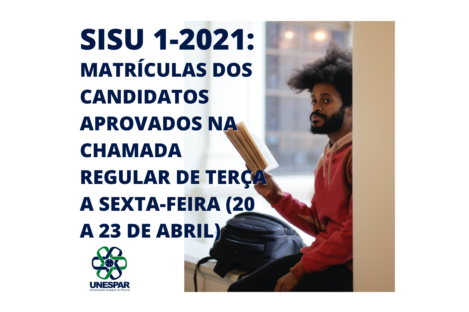 SiSU 1-2021: matrículas dos candidatos aprovados na chamada regular de terça a sexta-feira (20 a 23 de abril)