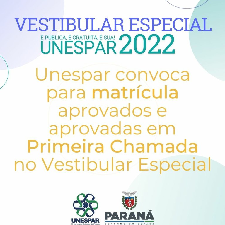 Unespar convoca para matrícula aprovados e aprovadas em Primeira Chamada no Vestibular Especial