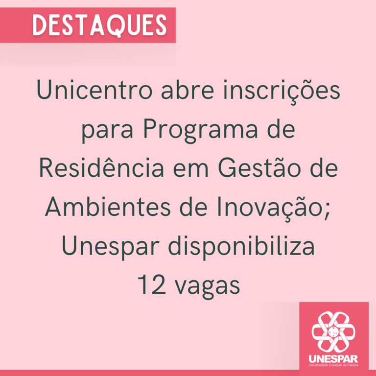 Unicentro abre inscrições para Programa de Residência em Gestão de Ambientes de Inovação; Unespar disponibiliza 12 vagas