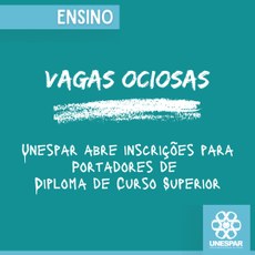 Vagas Ociosas: Unespar abre inscrições para Portadores de Diploma de Curso Superior