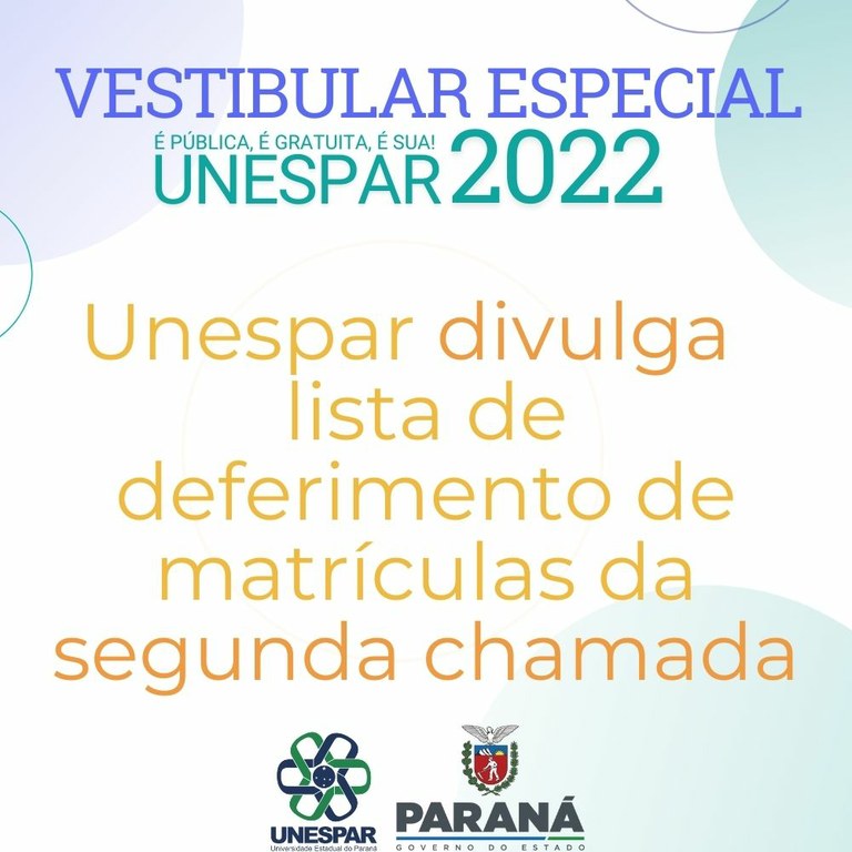 Vestibular Especial: Unespar divulga lista de deferimento de matrículas da segunda chamada
