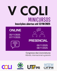 O V Congresso das Licenciaturas (COLI) abriu, nesta semana, as inscrições para participação em minicursos, modalidade que busca oferecer uma abordagem prática sobre temas vinculados às Licenciaturas e estimular a construção de conhecimentos em torno da temática central do evento.